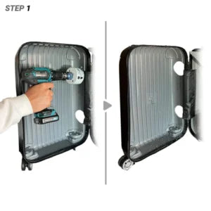 - Percez un nouveau trou de ventilation À l’aide d’une scie cloche de 75 mm (non incluse), percez un nouveau trou près de la lampe en haut de la valise pour une ventilation optimale.