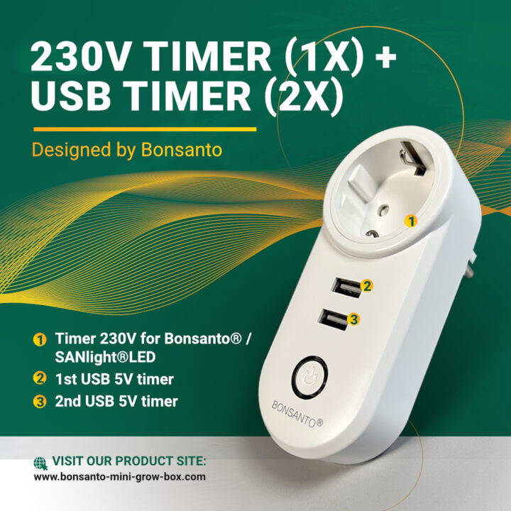 Découvrez l’outil ultime pour votre Boîte de Culture Bonsanto® ou votre tente : la Prise Minuteur Bonsanto® x3. Avec cette technologie ingénieuse, vous pouvez travailler plus efficacement et rester organisé.