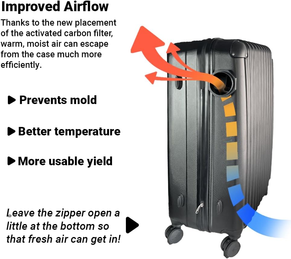 Die Bonsanto Mini Grow Box sieht aus wie ein schwarzer Koffer und steht in einem Kleiderschrank unterhalb der Kleiderstange.