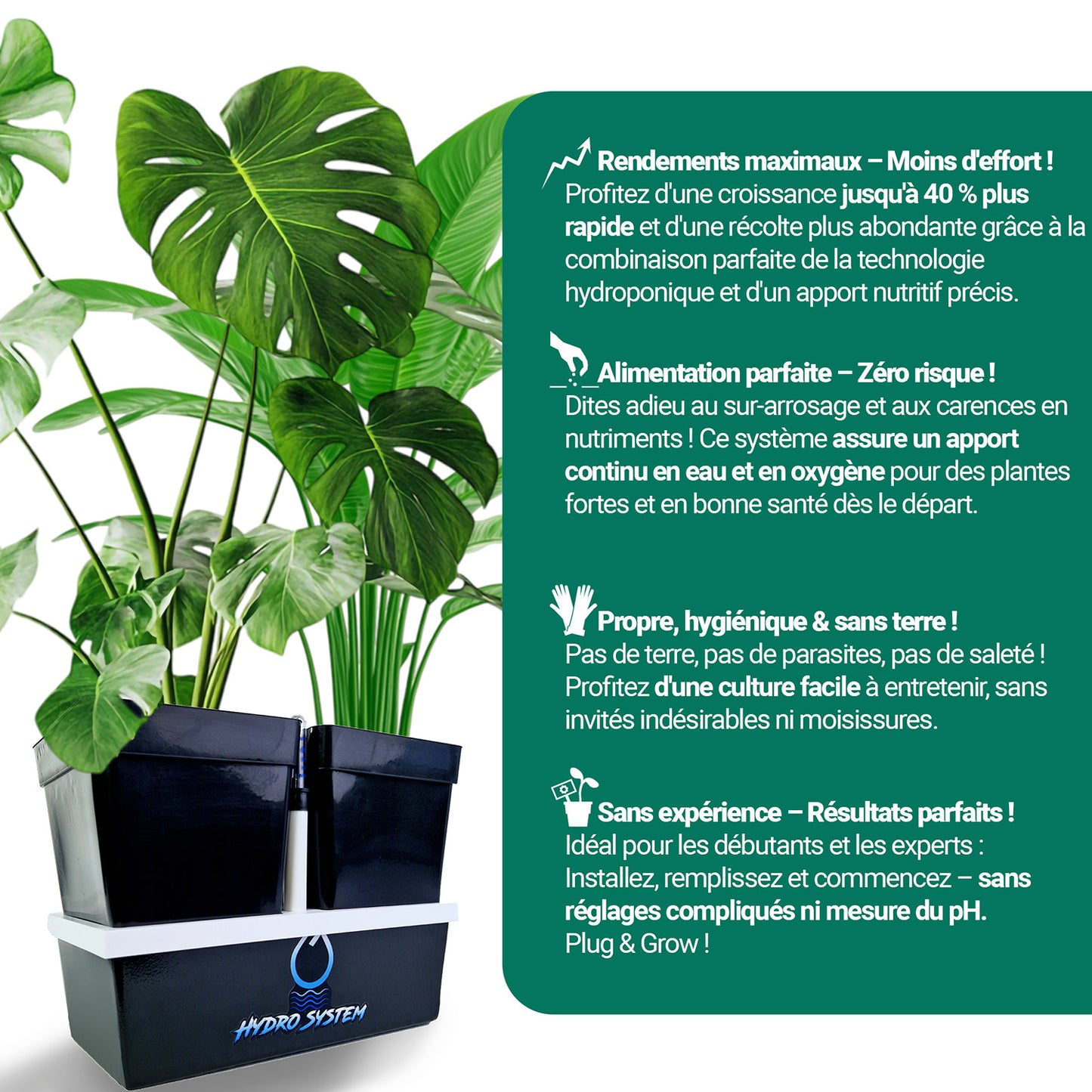 - Système hydroponique compact : 2x Bonsanto® Hydrosystem V 2.0 (2 x 3,2 litres)