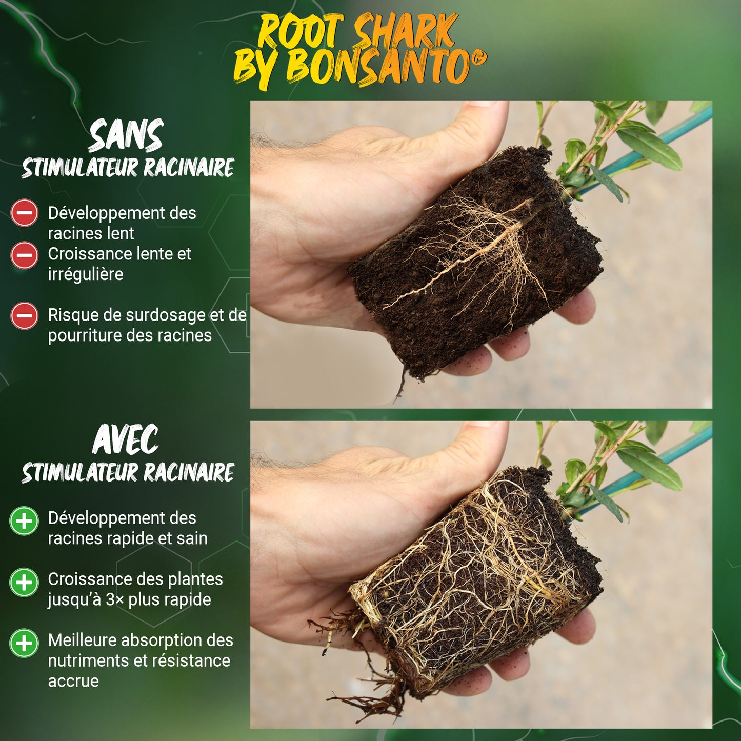 Accélère la croissance racinaire : jusqu’à 3x plus de racines en seulement quelques semaines