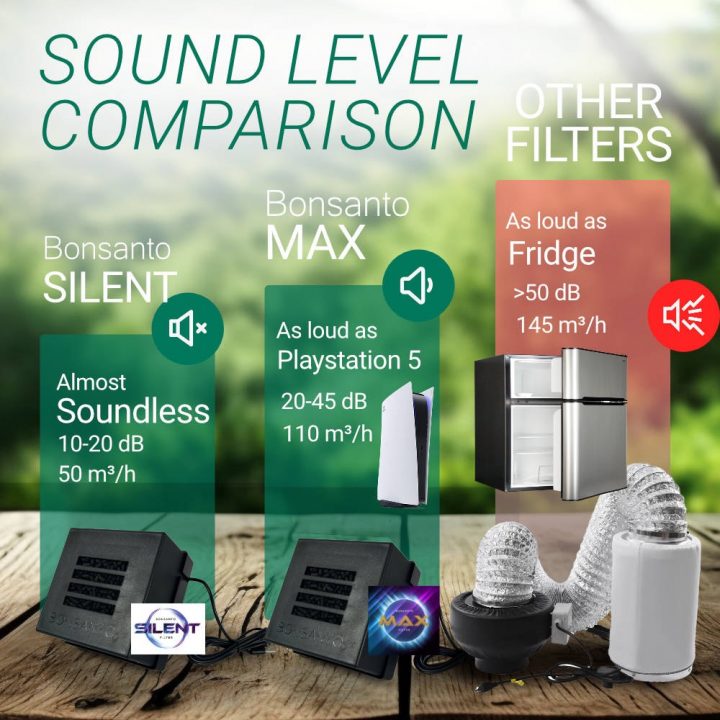 - Significativement plus silencieux que les tentes de culture traditionnelles (-70 % de db avec le filtre à charbon actif Max silencieux)